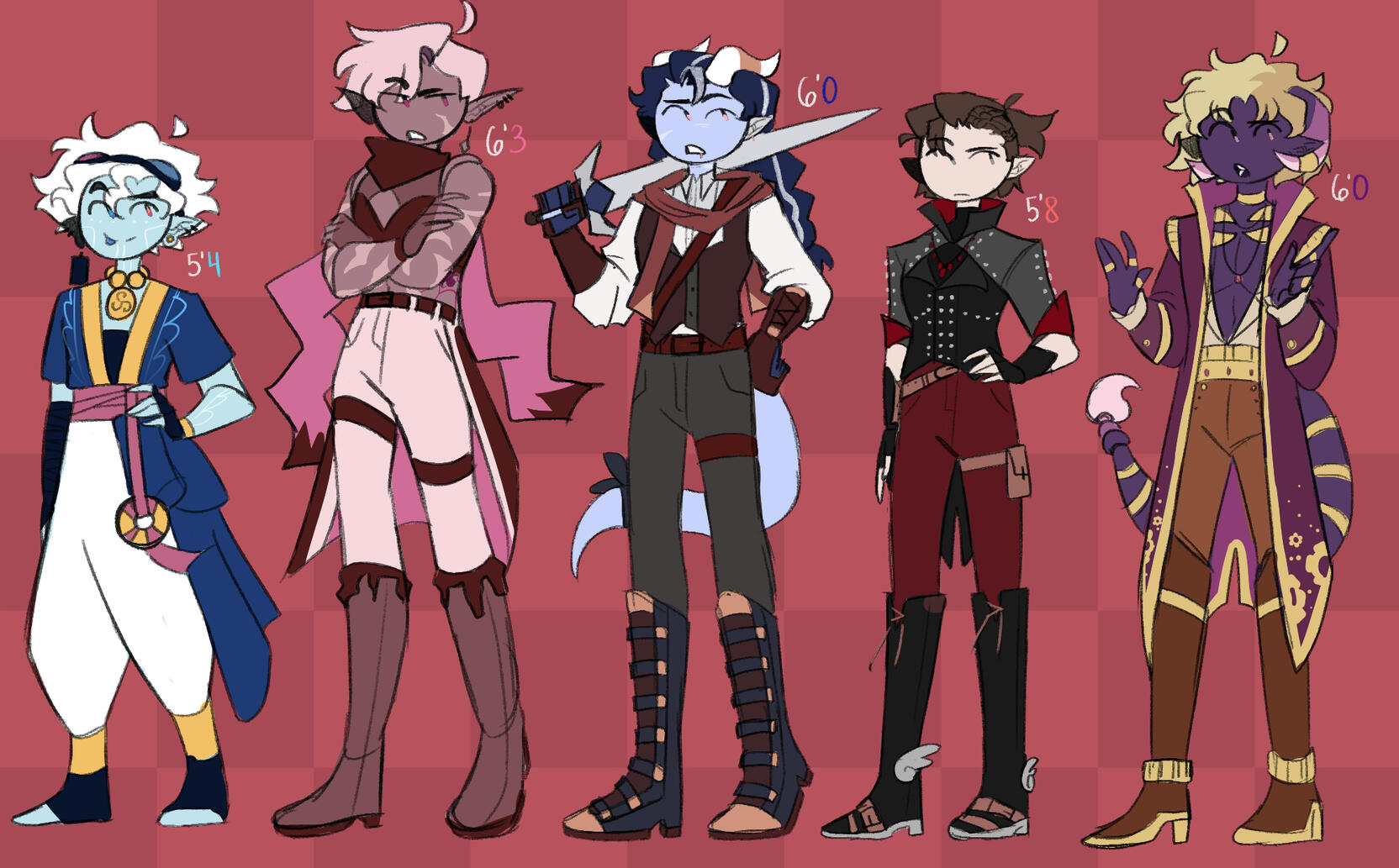 im really into dnd/fictional stories in general!! I really like saturated colors, sharp lineart, and humanoid characters :]dnd (dimension 20, critical role, JRWI Riptide)